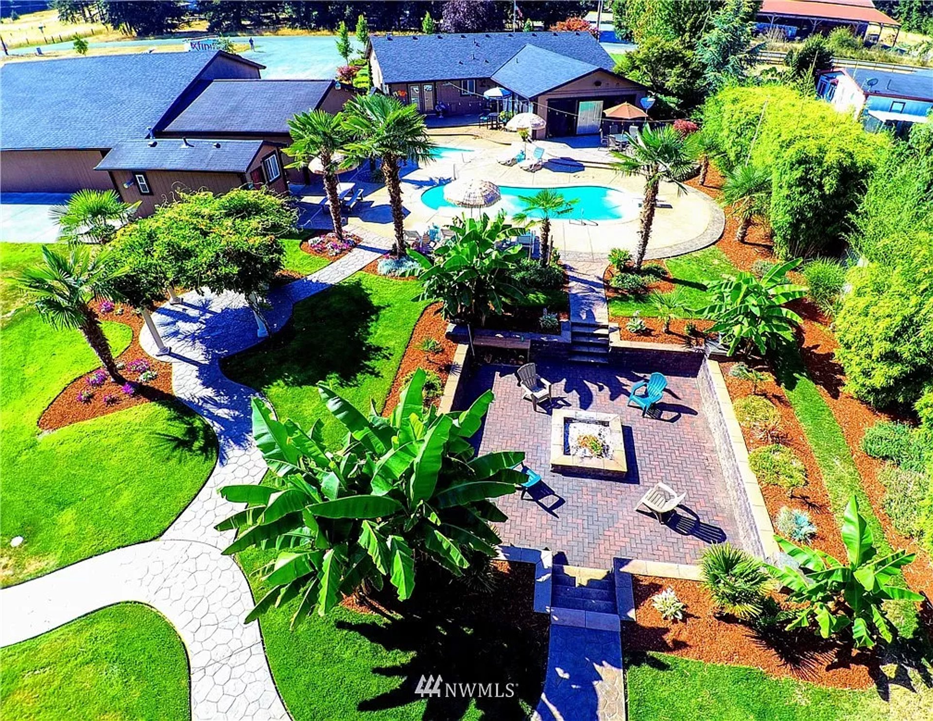 A tropical yard retreat is not created in one corner of a property.