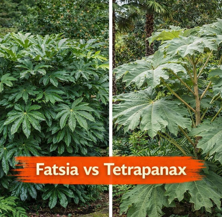 Compare Fatsia japonica and Tetrapanax papyrifer for Pacific Northwest gardens. Learn which tropical foliage plant works best for shade, size, and maintenance.