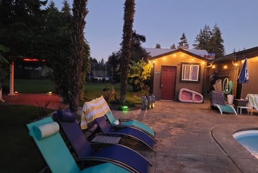 In many Northwest yards, outdoor spaces are treated as seasonal or occasional. Tropical-style gardens often reverse that pattern.